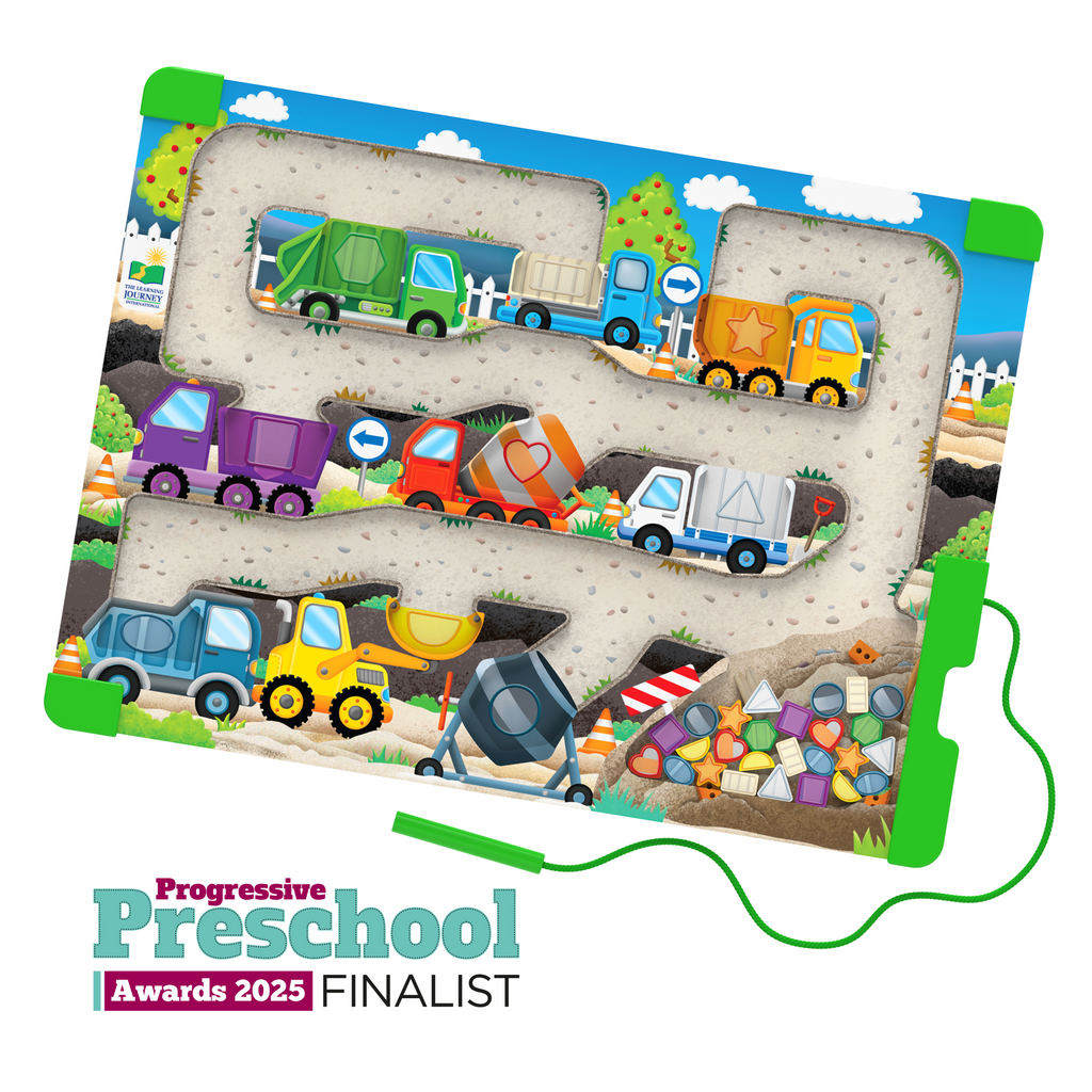 U162118Little ones will love to explore this fun construction maze, as they sort the shaped pieces into the corresponding location. This fun and colourful hands-on diggers and trucks magnetic tray puzzle helps children to learn colours and shapes in a fun and engaging way.